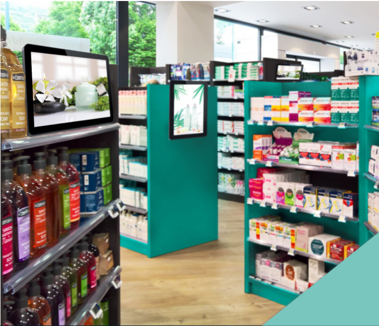 Nos écrans d’affichage dynamique sont conçus pour s’adapter à votre pharmacie. Disposez-les librement dans votre pharmacie aux endroits-clés pour toucher vos cibles.